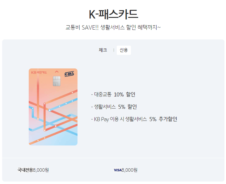 - K-패스 국민 신용카드 연회비 : 8,000원